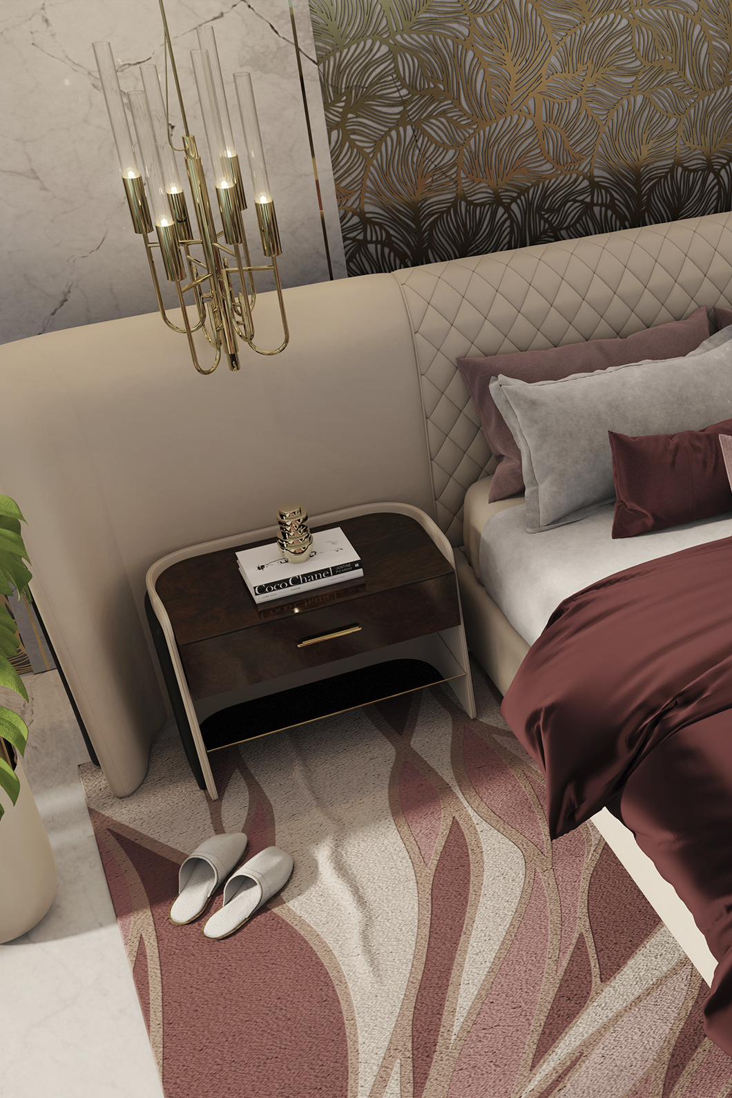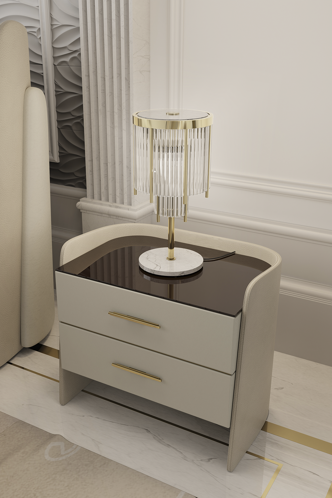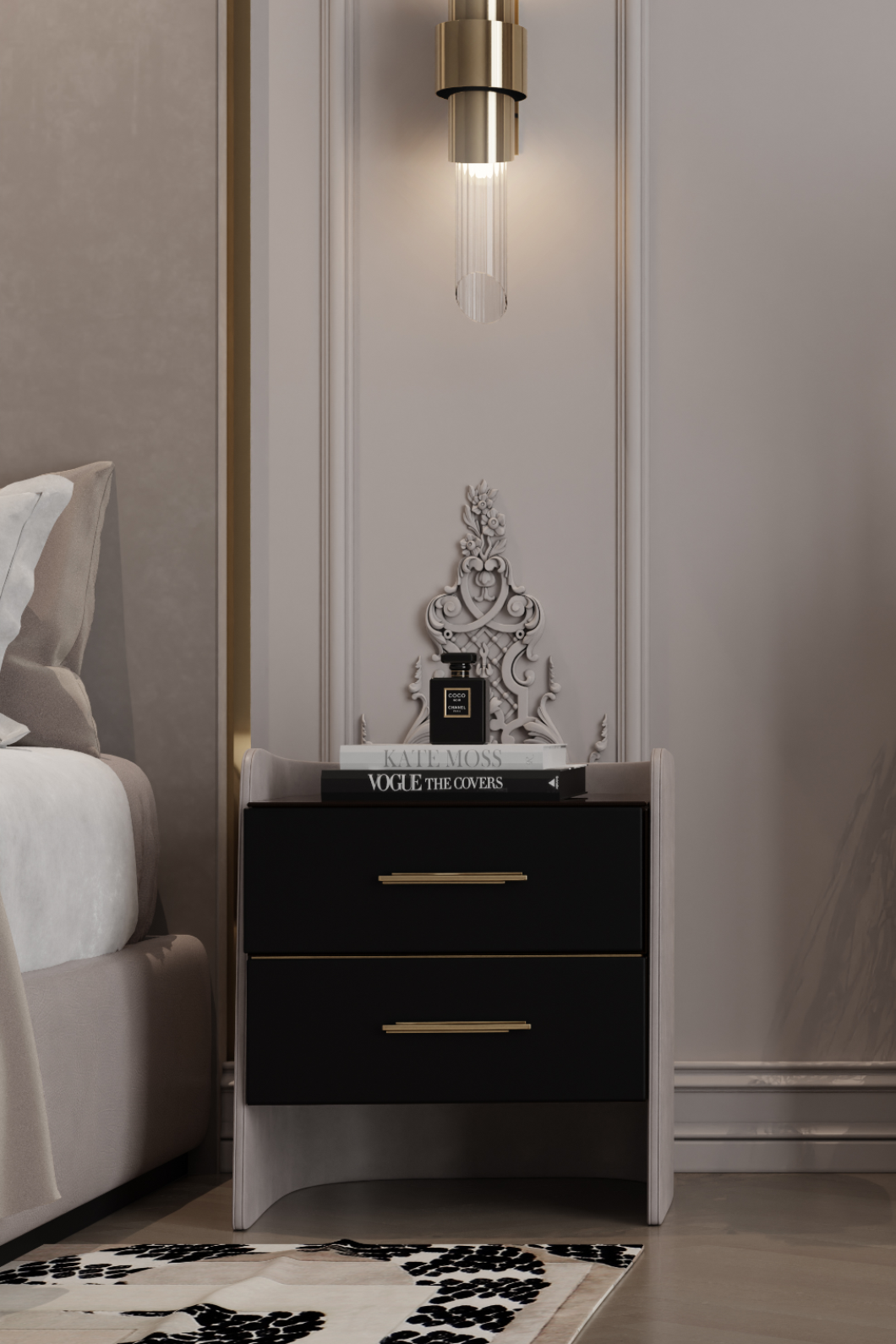 The Charla Nightstand completes any bedroom decor with its organic shape and boundless elegance. Made with high-end materials, this design piece features wireless charging, an electrical socket, and USB charging for ultimate functionality. It serves as a modern nightstand, perfect for creating a luxurious bedroom design.